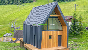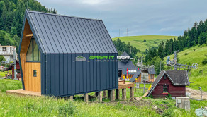 - objekt - má jedno nadzemné podlažie a podkrovie. Terén na stavebnej parcele je svahovitý, stúpa od juhovýcho dnej strany smerom k severozápadu. Chatky budú zasadené do svahu. Objekt má dve terasy - jednu prístupnú k obom vstupným dverám do objektu a druhú pri obývacej izbe.