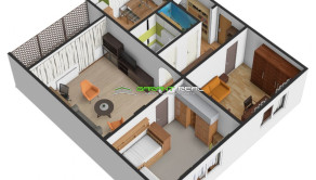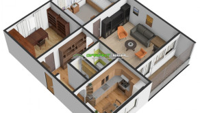 - v kuchyni sa nachádza kuchynská linka riešená do "L" na dvoch stenách, s plynovým sporákom, digestorom a potravinovou skriňou