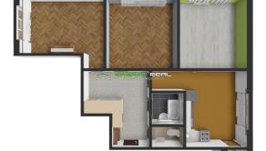 - obývacia izba s loggiou 23,25 m2, študentská izba 14,52 m2 s loggiou 5,2 m2, kuchyňa - orientované na západ