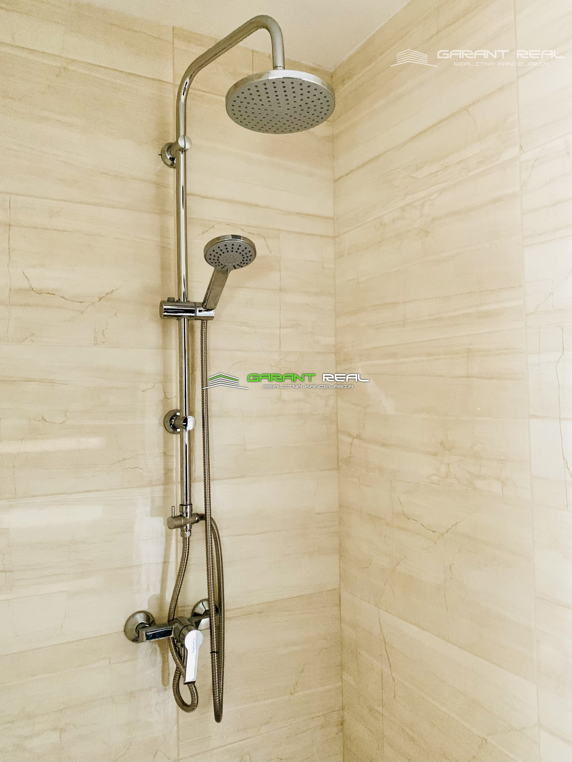 - kúpeľňa so sprchovacím kútom, prepojená s WC