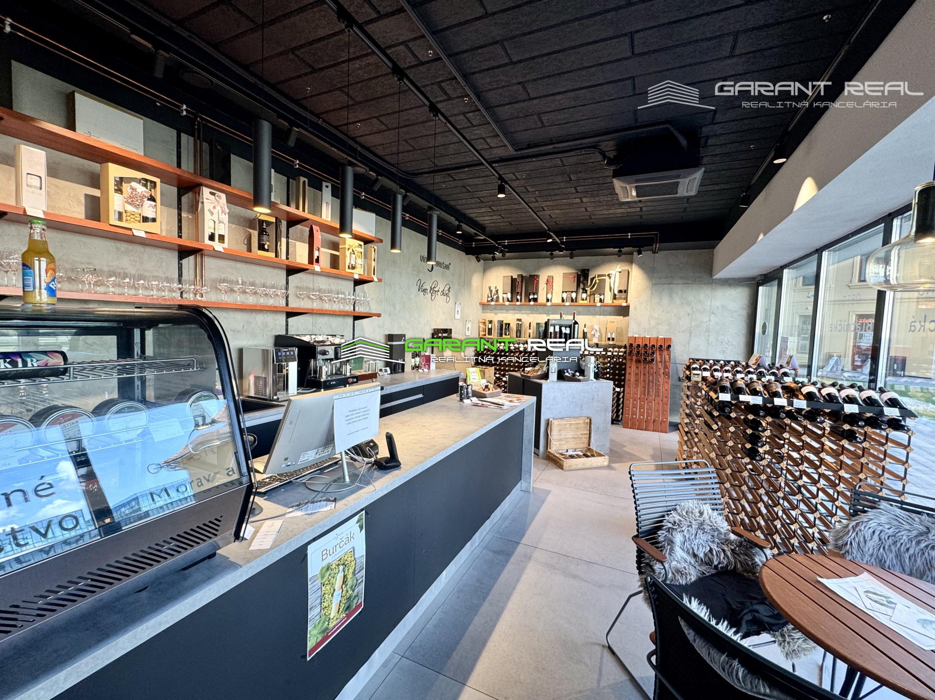 - zariadenie a vybavenie je možné odkúpiť po dohode, všetky zariadenia sú vyššej kvalitatívnej triedy, profesionálny kávovar s kontrolovaným tlakom a nahrievaním šálok (značka Atlas), pult na čapovanie vína, pulty + kompletné vybavenie vinotéky