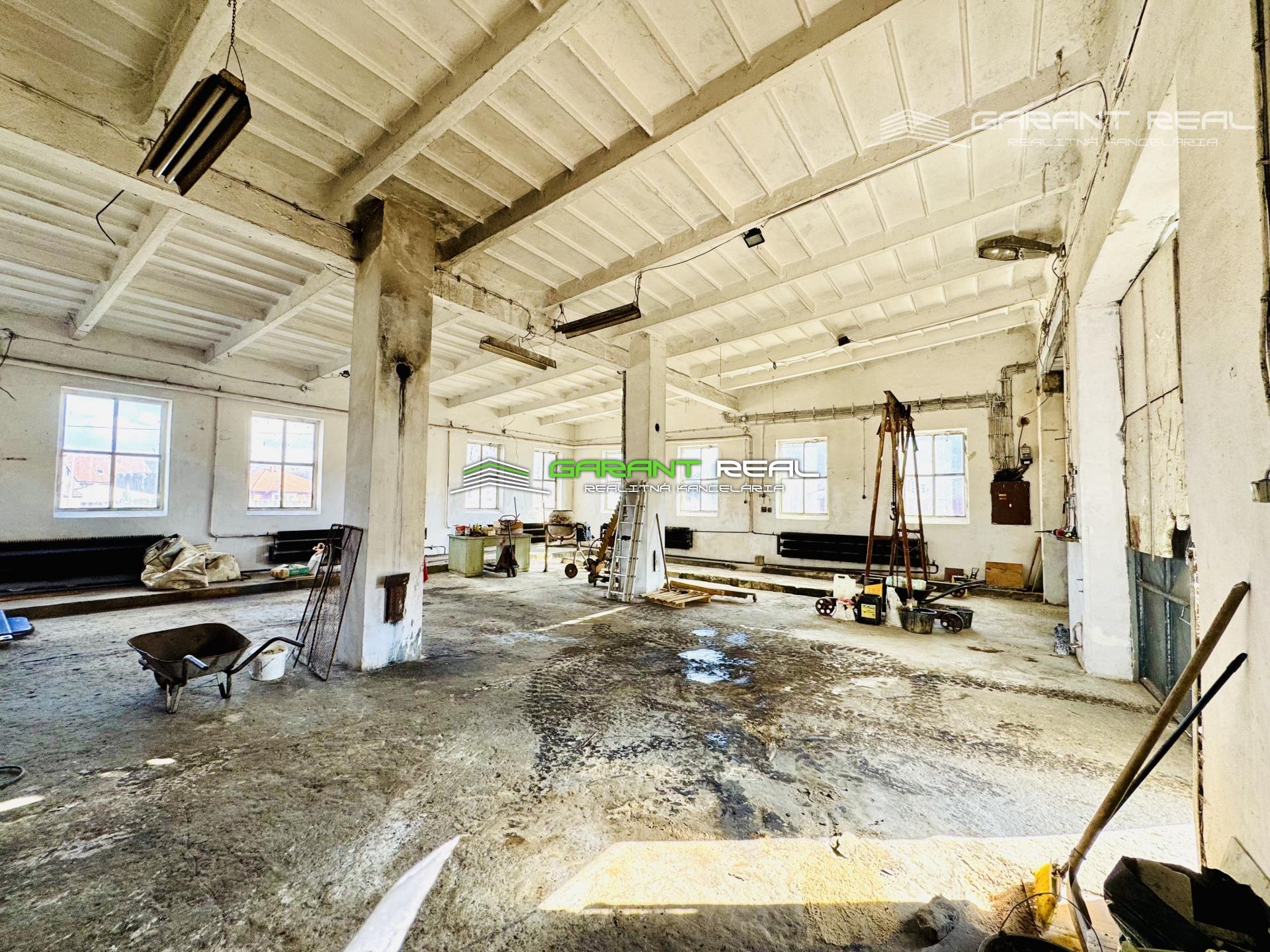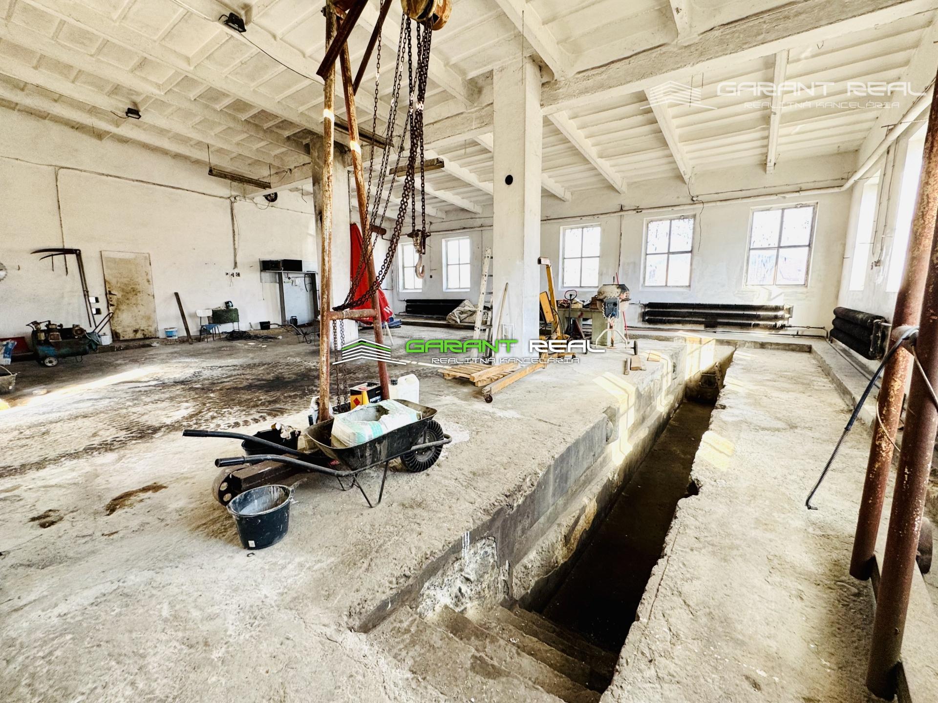 Ponúkame na predaj veľkometrážne garáže pre nákladné autá, využiteľné aj ako skladové priestory s pozemkom pred budovami, spolu zastavaná plocha objektov a dvor 882 m2 + ďalší pozemok s vecným bremenom na ploche 226 m2, úžitková plocha garáží 340 m2, Veľký Šariš.