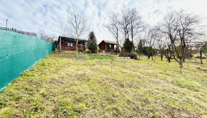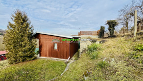 - svahovitý pozemok s drevenou podpivničenou záhradnou chatkou so zastrešenou teraskou, so samostatnou stavbou - pivnica umiestnená vo svahu za chatou