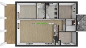 - riešenie interiéru: predsieň, obývacia izba prepojená s jedálňou a kuchyňou, 2 detské izby, spálňa, kúpeľňa, technická miestnosť, terasa
