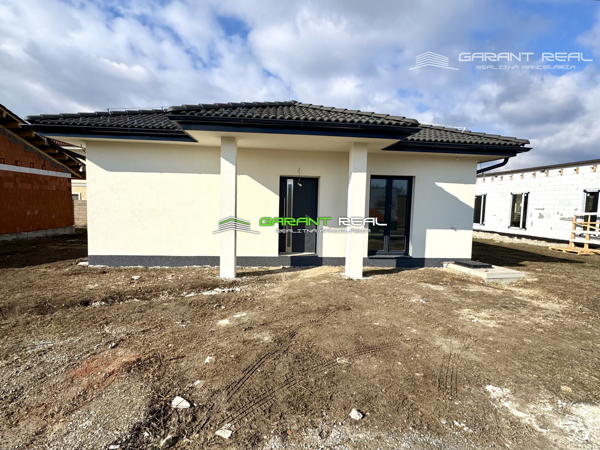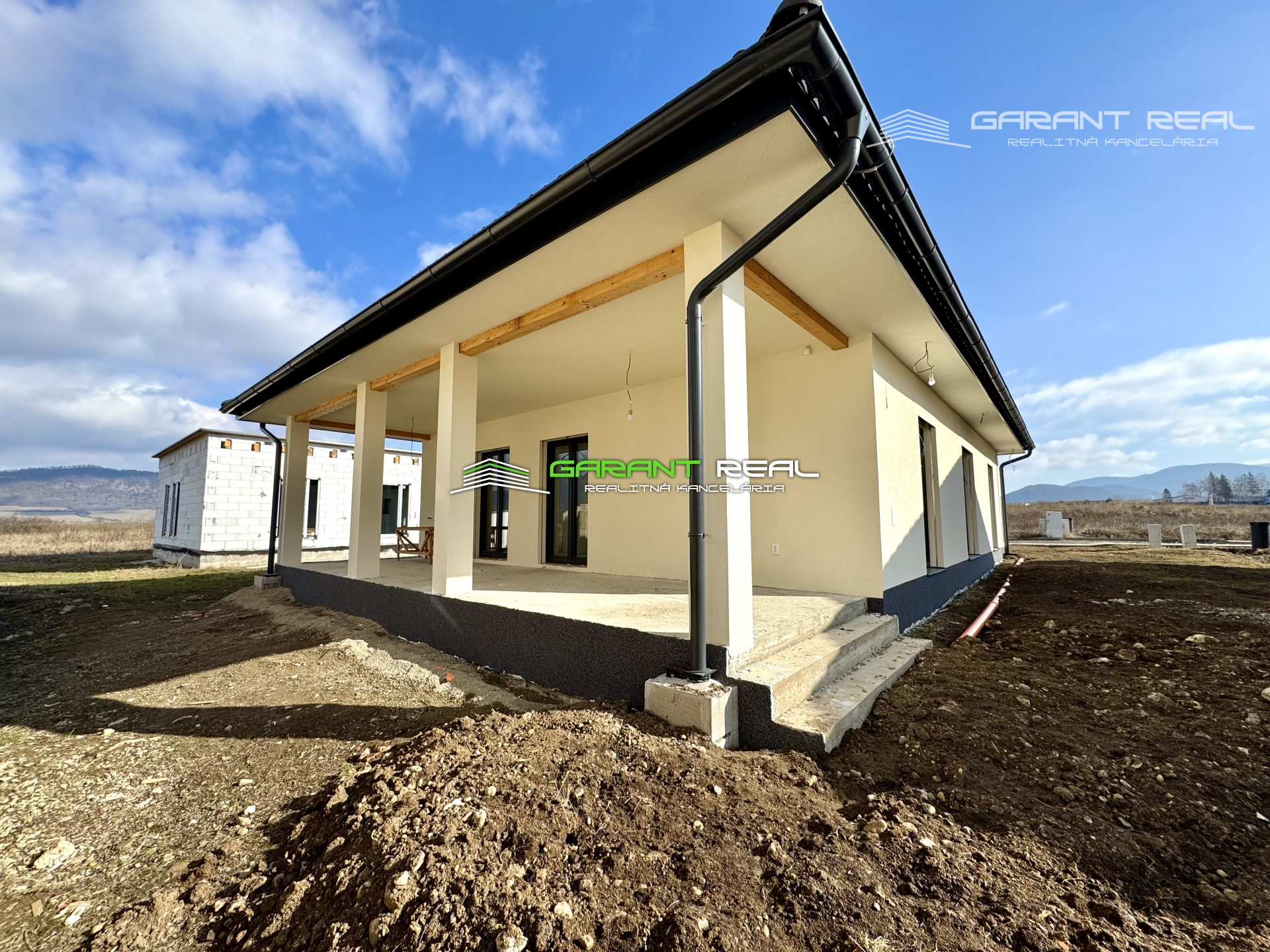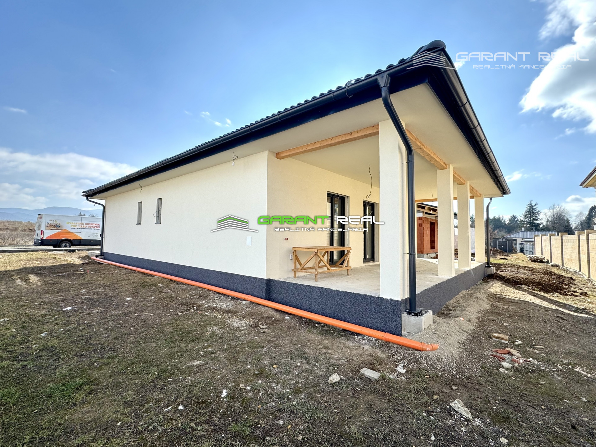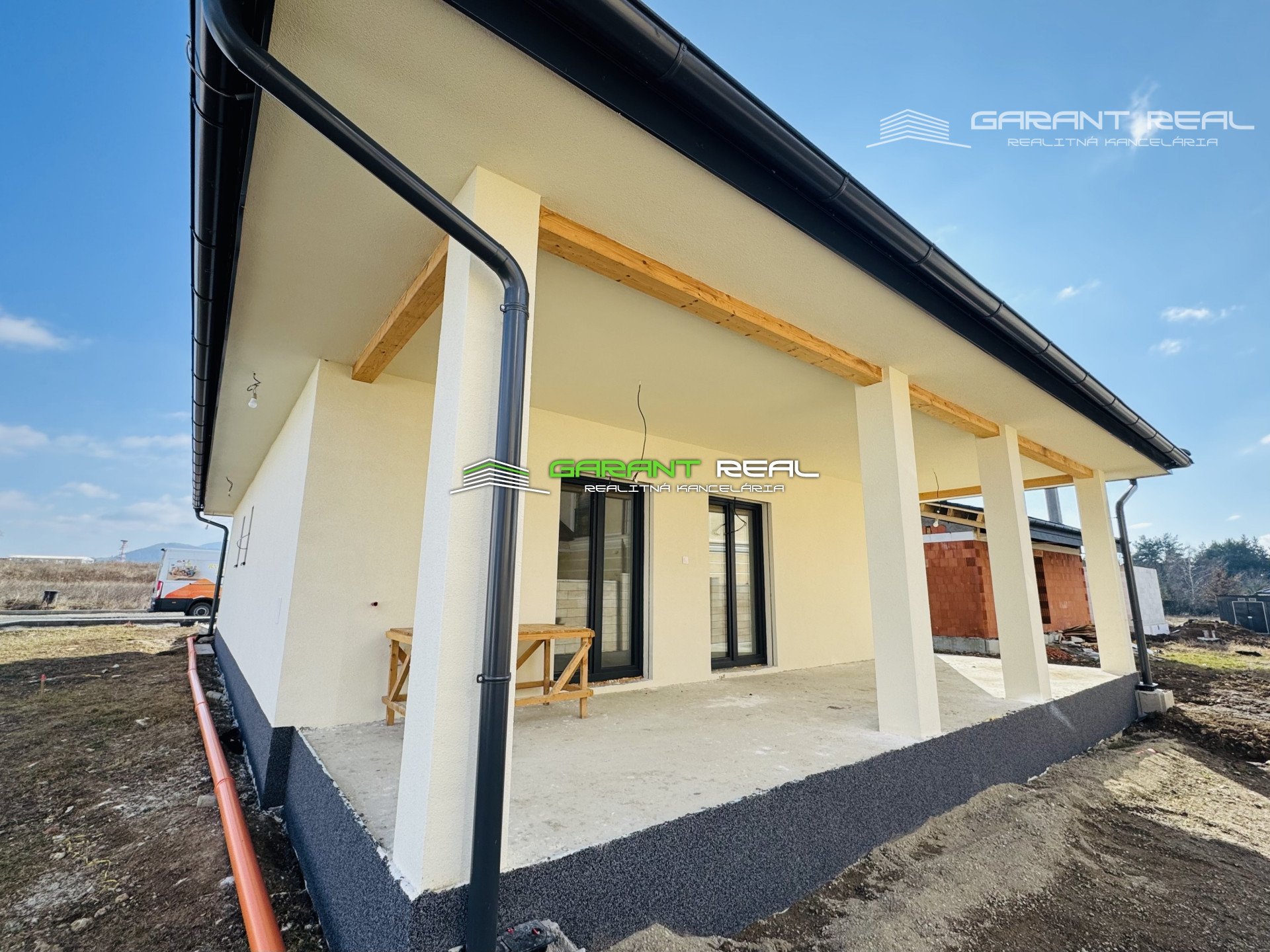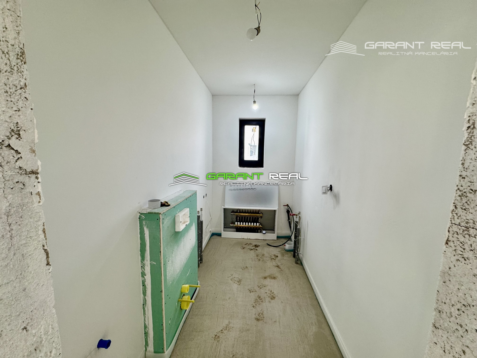 - dom je v súčasnosti so základnou nivelizačnou vrstvou podlahy, bez dverí, bez zárubní, bez vrchnej vrstvy podláh, vypínače a zásuvky sú namontované, s predprípravou na montáž kuchynskej linky, avšak bez kuchynského nábytku a sanity v kúpeľni, 2 x WC - Geberit bude nainštalované