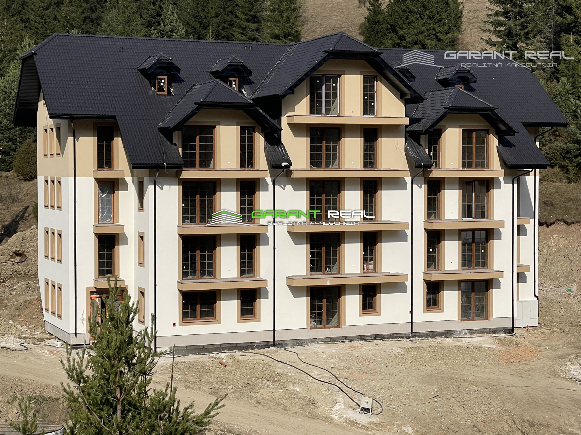Budova „A“, (ktorá sa nachádza najbližšie k lyžiarskemu svahu) a budova „B" bude v krátkej dobe skolaudovaná. Aktuálne prebieha aj výstavba budovy„C", ktorej apartmány sú už v predaji !
