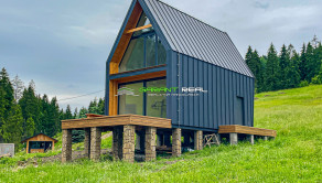 - objekt - má jedno nadzemné podlažie a podkrovie. Terén na stavebnej parcele je svahovitý, stúpa od juhovýcho dnej strany smerom k severozápadu. Chatky budú zasadené do svahu. Objekt má dve terasy - jednu prístupnú k obom vstupným dverám do objektu a druhú pri obývacej izbe.