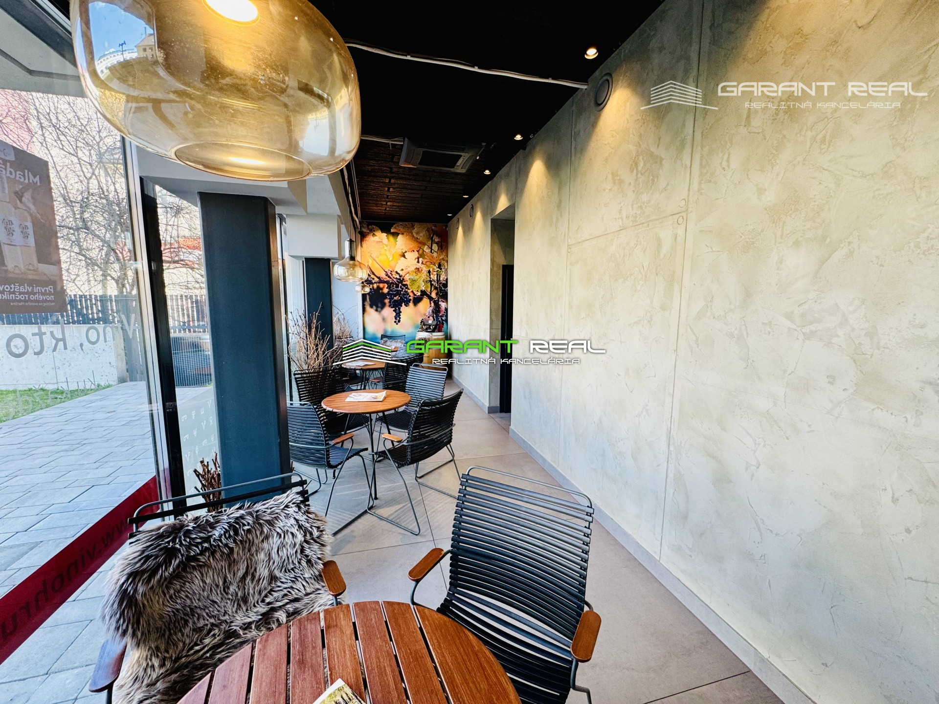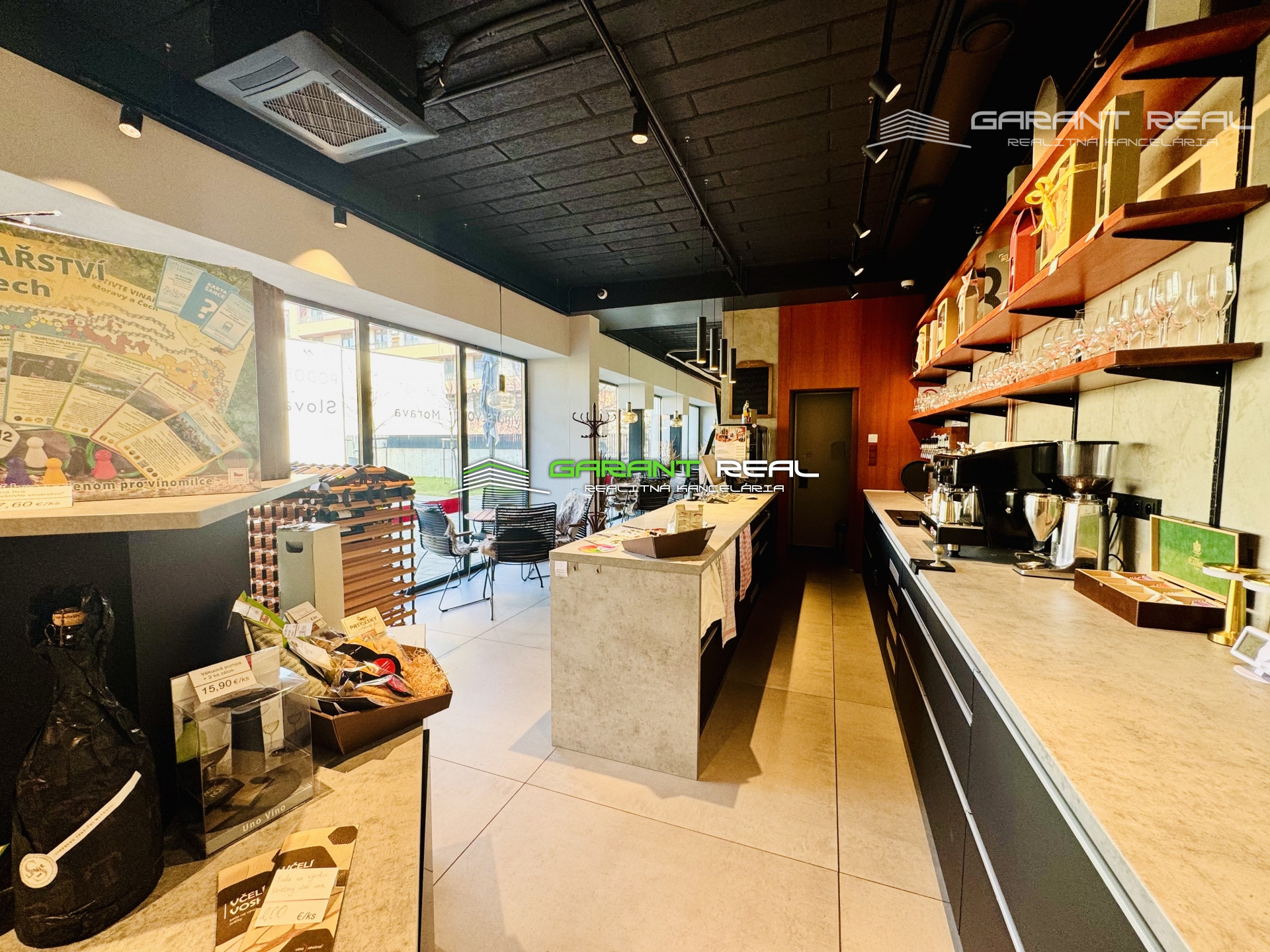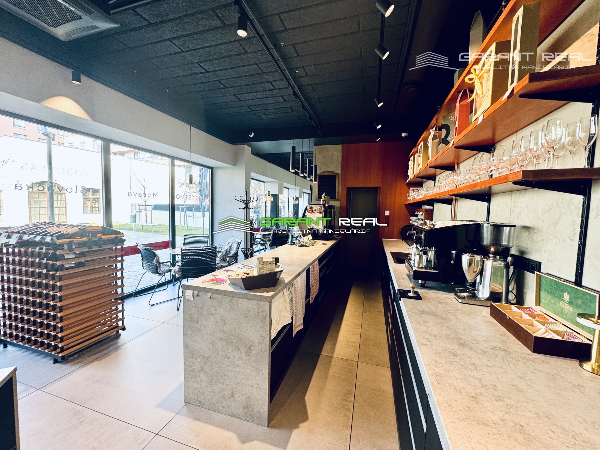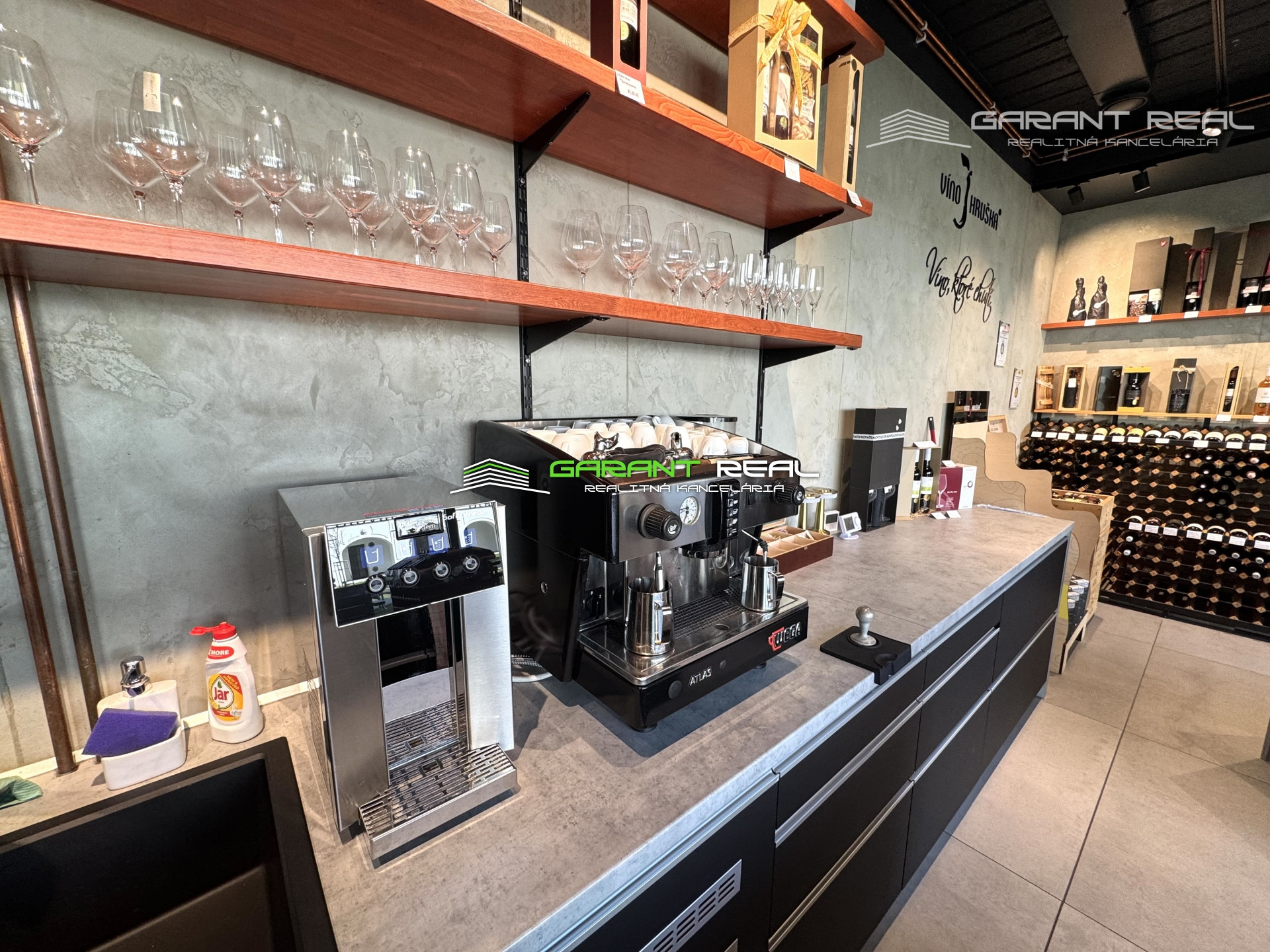 - zariadenie a vybavenie je možné odkúpiť po dohode, všetky zariadenia sú vyššej kvalitatívnej triedy, profesionálny kávovar s kontrolovaným tlakom a nahrievaním šálok (značka Atlas), pult na čapovanie vína, pulty + kompletné vybavenie vinotéky