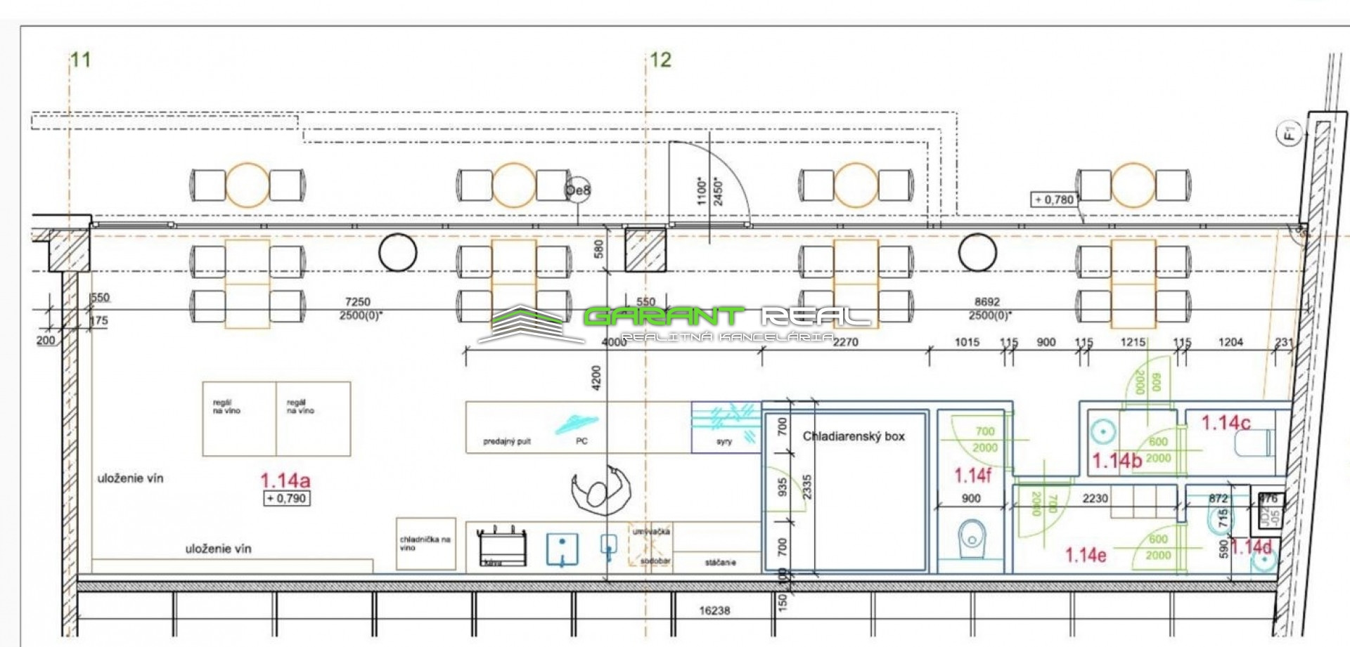 - rozloha zázemia - 2 x sklad - suchý sklad + chladiareň, 2 x sociálne zariadenie: 1 x pre personál + 1 x pre zákazníkov spolu rozloha zázemia 16 m2